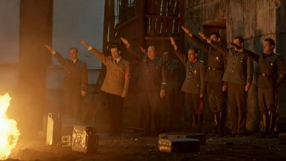 Setelah Hitler meninggal dan mayatnya di bakar, para Jendral dan pengikut setia-nya melakukan penghormatan terakhir kepada Hitler diluar Bunker.